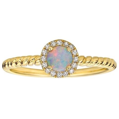 Genuine Opal Round 4.5mm & Diamond Halo Rope Shank Ladies Ring 10KT