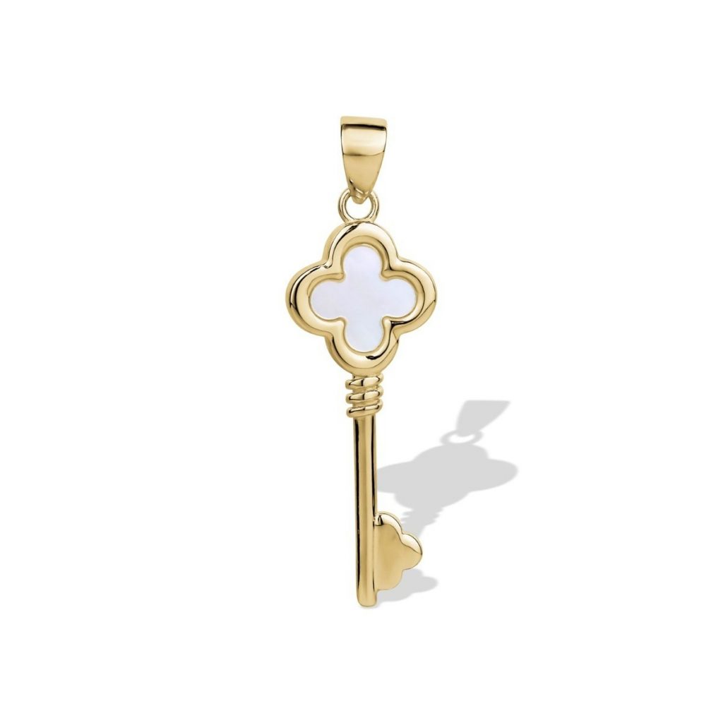 Mother of Pearl Inlay Skeleton Key Pendant 10KT/25MM
