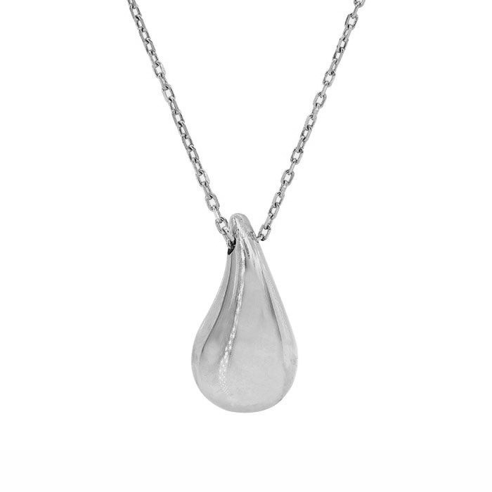 Rain Drop Slider Puffed Pendant with 18″ Chain 10KT WG/13MM