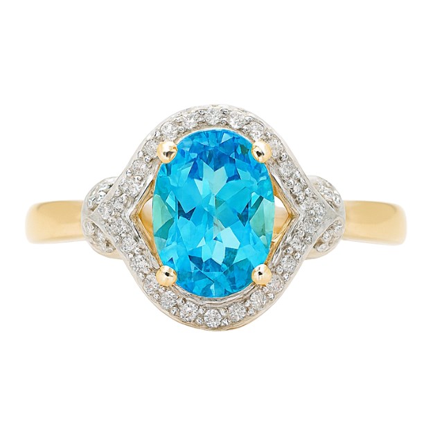 Gen. Blue Topaz Oval 8×6 & .10TCW Diamond Ladies Ring 10KT