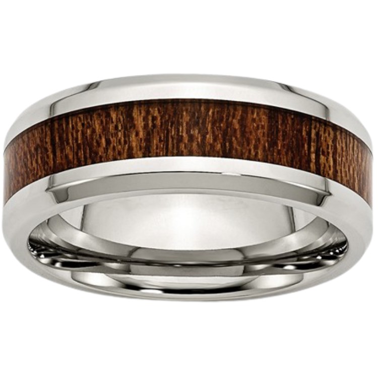 / 8MM Brown Koa Wood Inlay Stainless Steel Wedding Band/Size 10
