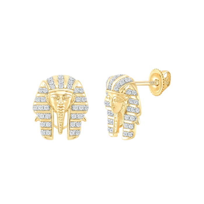 .20TCW Diamond Micro Pave King Tut Screwback Earrings 10KT/14MM **CLEARANCE-FINAL SALE**