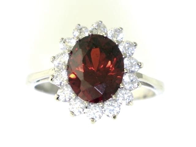 Sim Garnet & Cubic Zirconia Cluster Ring Sterling Silver/Adjustable