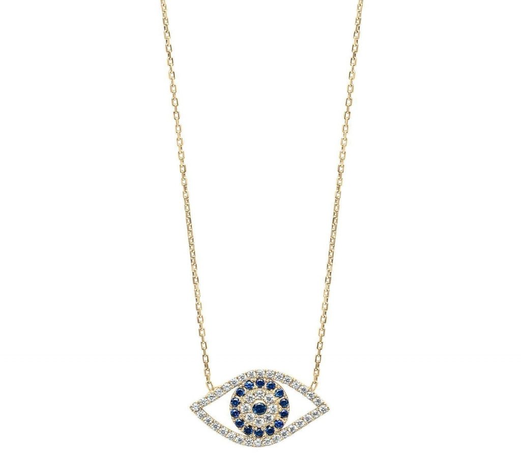 Evil Eye Coloured Cubic Zirconia 18″ Necklace 10KT