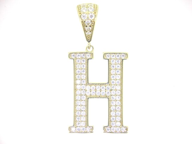 H Block Initial with Cubic Zirconia Pave Pendant 10KT/25MM