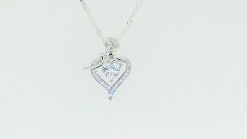 5MM Heart Shaped Sim. Birthstone w/Cubic Zirconia Heart & Rose Pendant with 18″ Chain Sterling Silver/15MM
