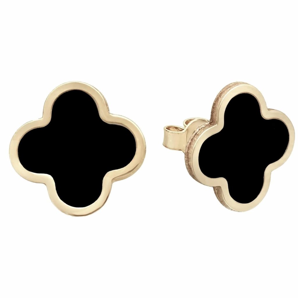 Black Onyx Clover Stud Earrings 10KT/10MM *FINAL SALE*