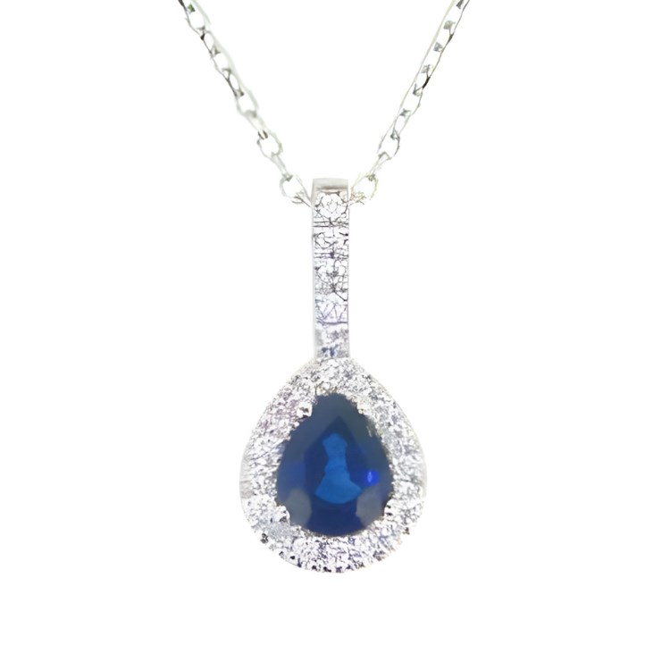 Gen Sapphire Pear & .09tcw Diamonds with Adjustable 16-18″ Rolo Link Chain 14KT WG