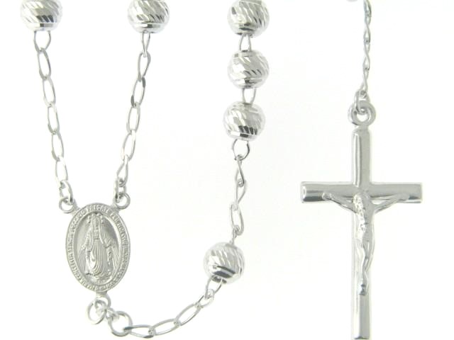 28-32″ 7MM D.Cut Ball Rosary with Crucifix Sterling Silver
