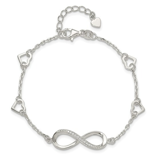Inifinity with Cubic Zirconia & 7-8″ Adjustable Heart Station Bracelet Sterling Silver