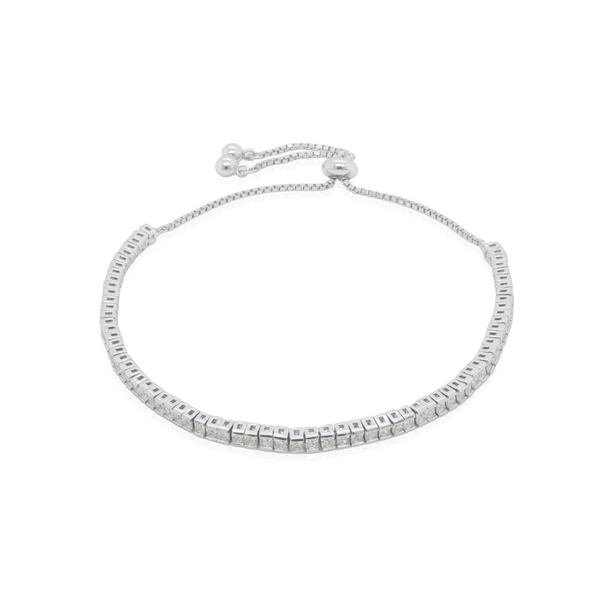 2MM Princess Cubic Zirconia Adjustable Bolo Bracelet Sterling Silver quantity