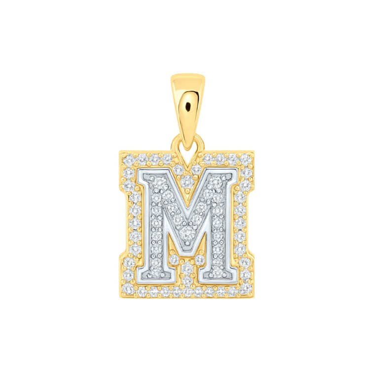 M Initial .25TCW Diamond Raised Block Pendant 10KT TT/12MM