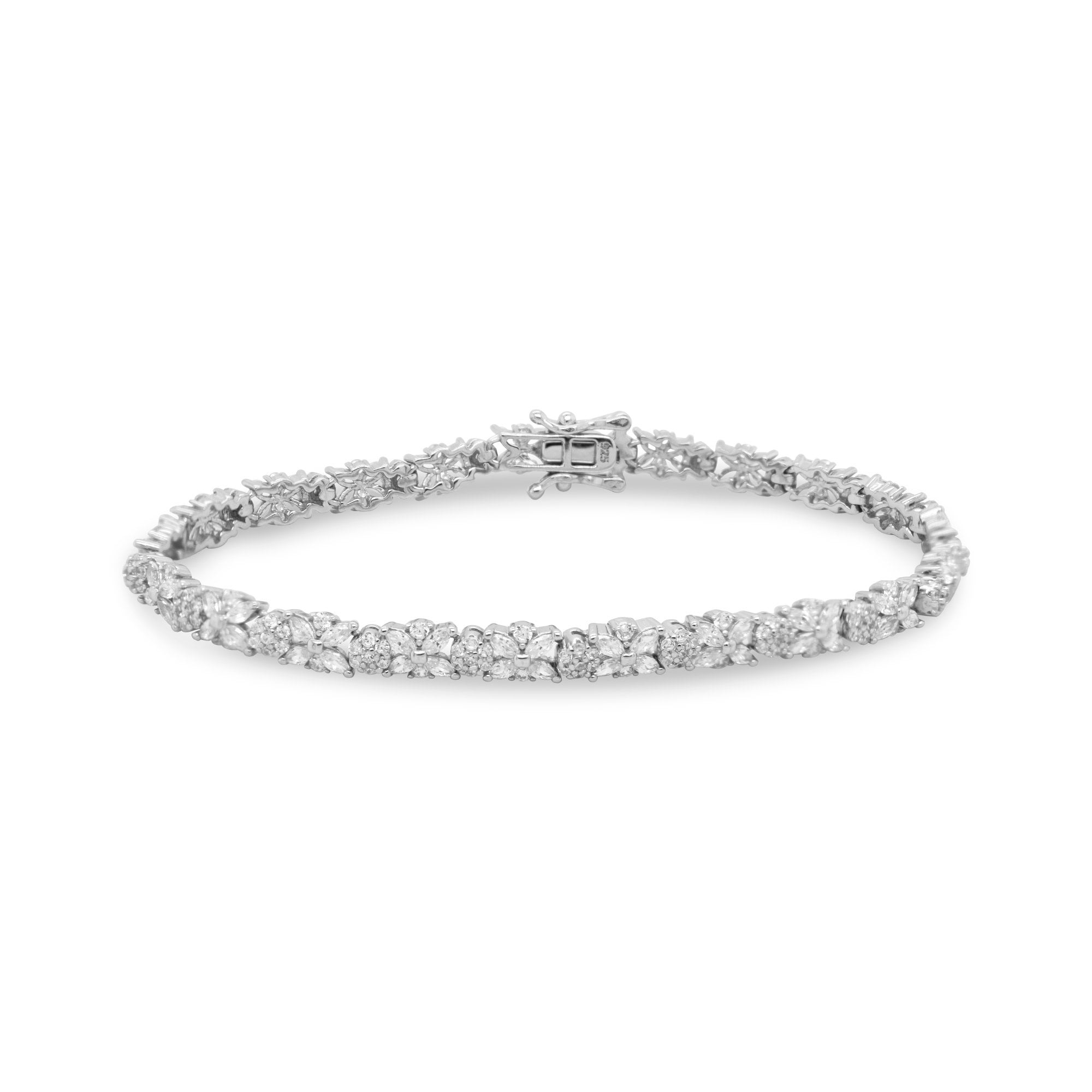 / Floral Design Cubic Zirconia 7″ Tennis Bracelet Sterling Silver
