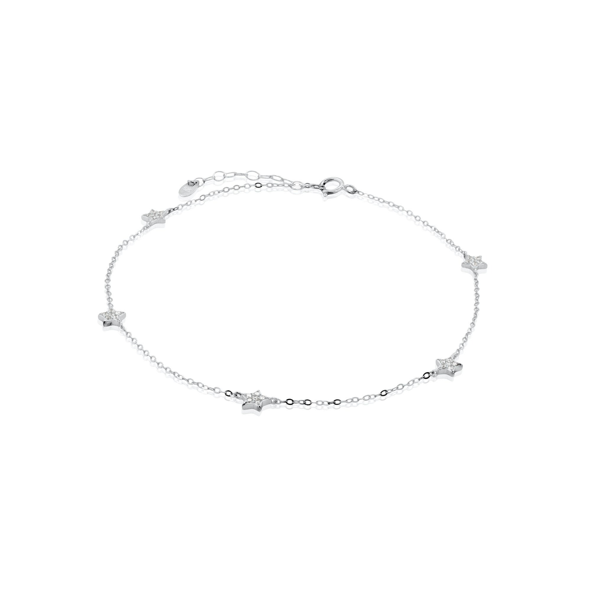 Multi Star Cubic Zirconia 9-10″ Anklet Sterling Silver