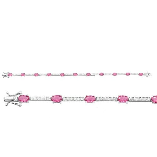 Pink & White Cubic Zirconia 8″ Tennis Bracelet Sterling Silver