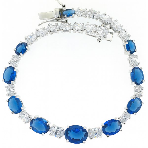 Sim. Sapphire & Cubic Zirconia Oval Graduated 7″ Tennis Bracelet Sterling Silver