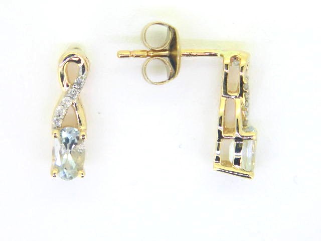 Genuine Aquamarine 5×3 & .05TCW Diamond Accented Infinity Design Stud Earrings 10KT *FINAL SALE*