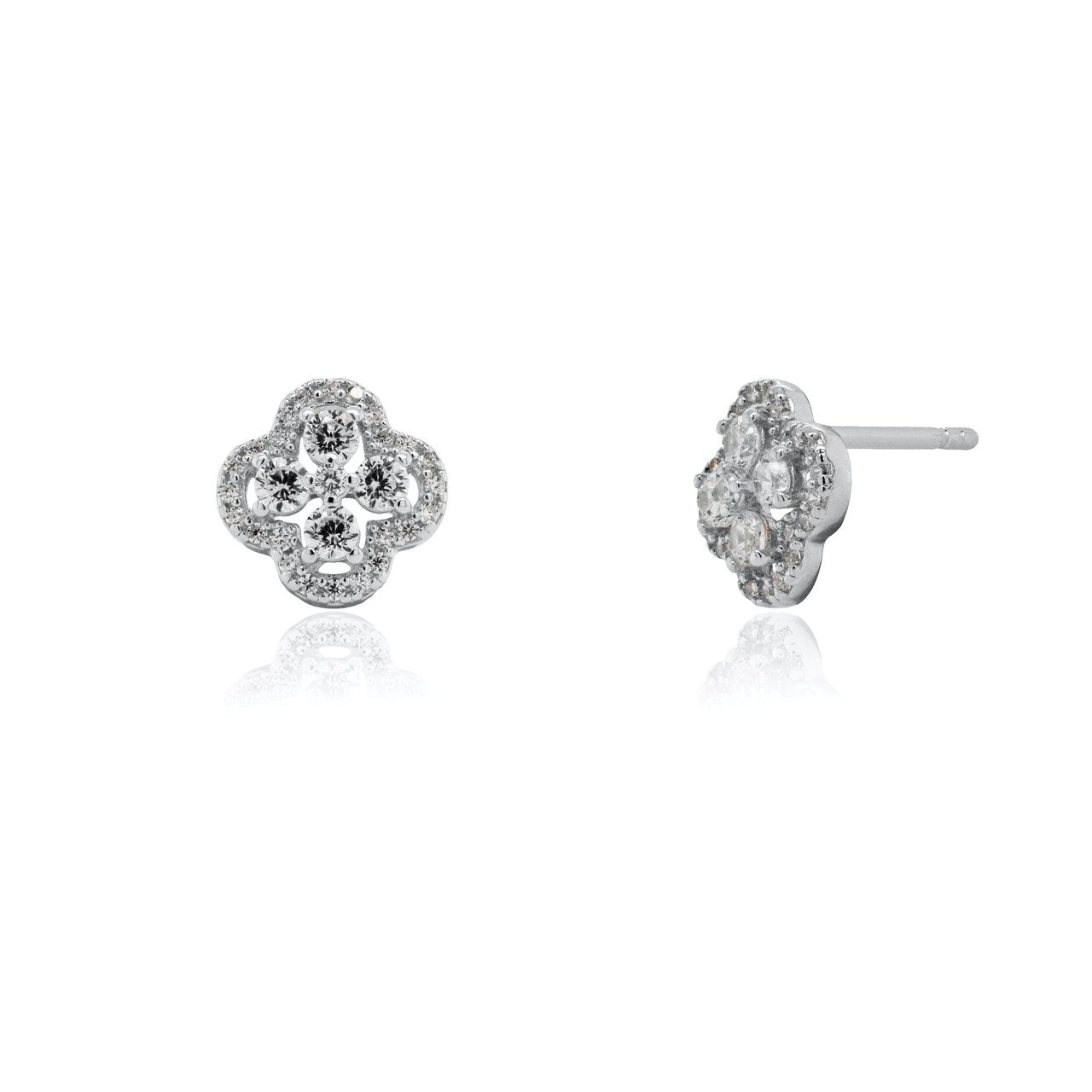 Cubic Zirconia Clover Shape Stud Earrings Sterling Silver/8MM *FINAL SALE* quantity