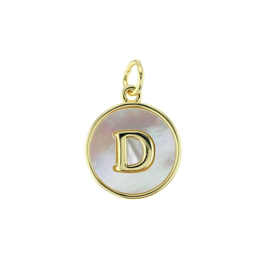 D Initial Mother of Pearl Medallion Pendant 10KT *CLEARANCE-FINAL SALE*