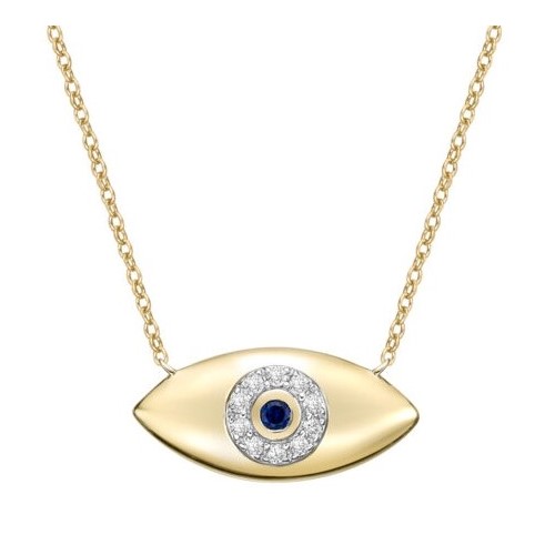 Genuine Sapphire & .04TCW Diamonds Evil Eye Necklace 10KT/16MM *CLEARANCE-FINAL SALE*