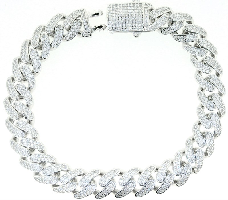 9″ Miami Cuban Cubic Zirconia Pave Bracelet Sterling Silver/11MM