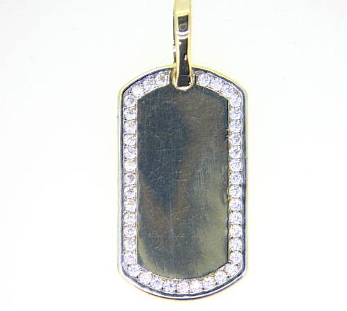 Dog Tag with Cubic Zirconia Pave Border 10KT/30MM *Engravable *CLEARANCE-FINAL SALE*