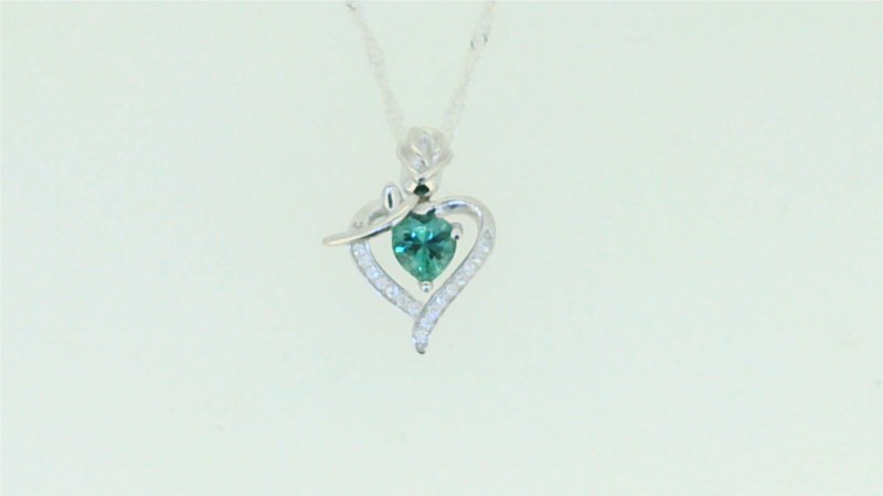 5MM Heart Shaped Sim. Birthstone w/Cubic Zirconia Heart & Rose Pendant with 18" Chain Sterling Silver/15MM quantity