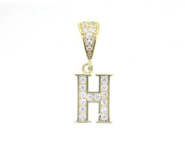 H Block Initial with Cubic Zirconia Pave Pendant 10KT/H 11MM