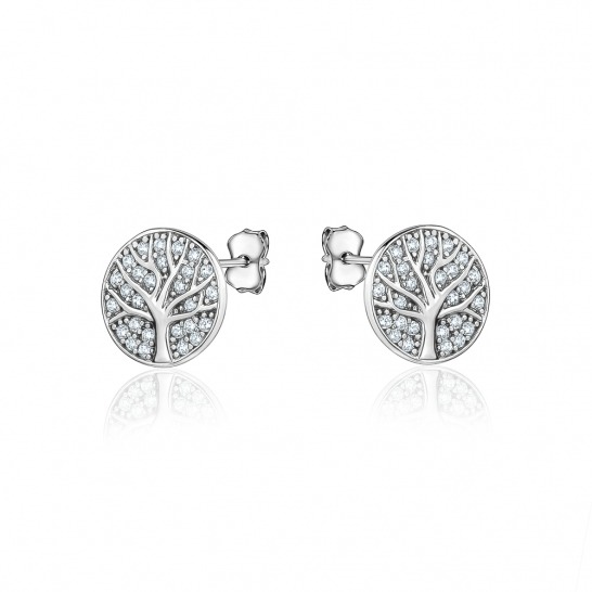Tree of Life Cubic Zirconia Pave Round Stud Earrings Sterling Silver/10MM