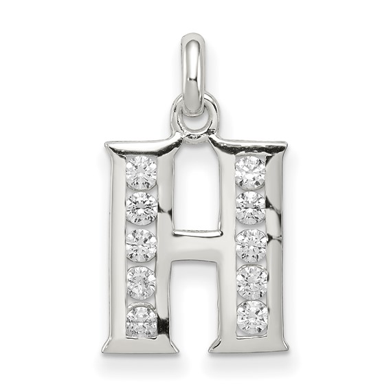 H Initial Block with Cubic Zirconia Sterling Silver Pendant/15MM quantity