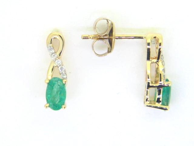 Genuine Emerald 5×3 & .05TCW Diamond Accented Infinity Design Stud Earrings 10KT *FINAL SALE*