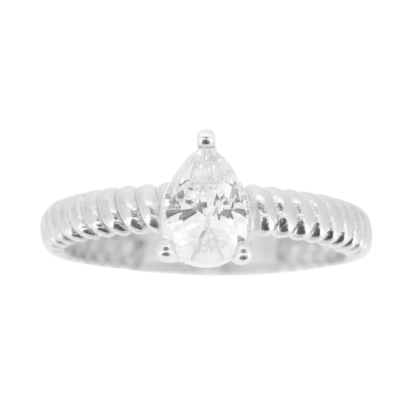 Pear Shape 7x5mm Cubic Zirconia Solitaire Ladies Ring 10KT WG/3MM
