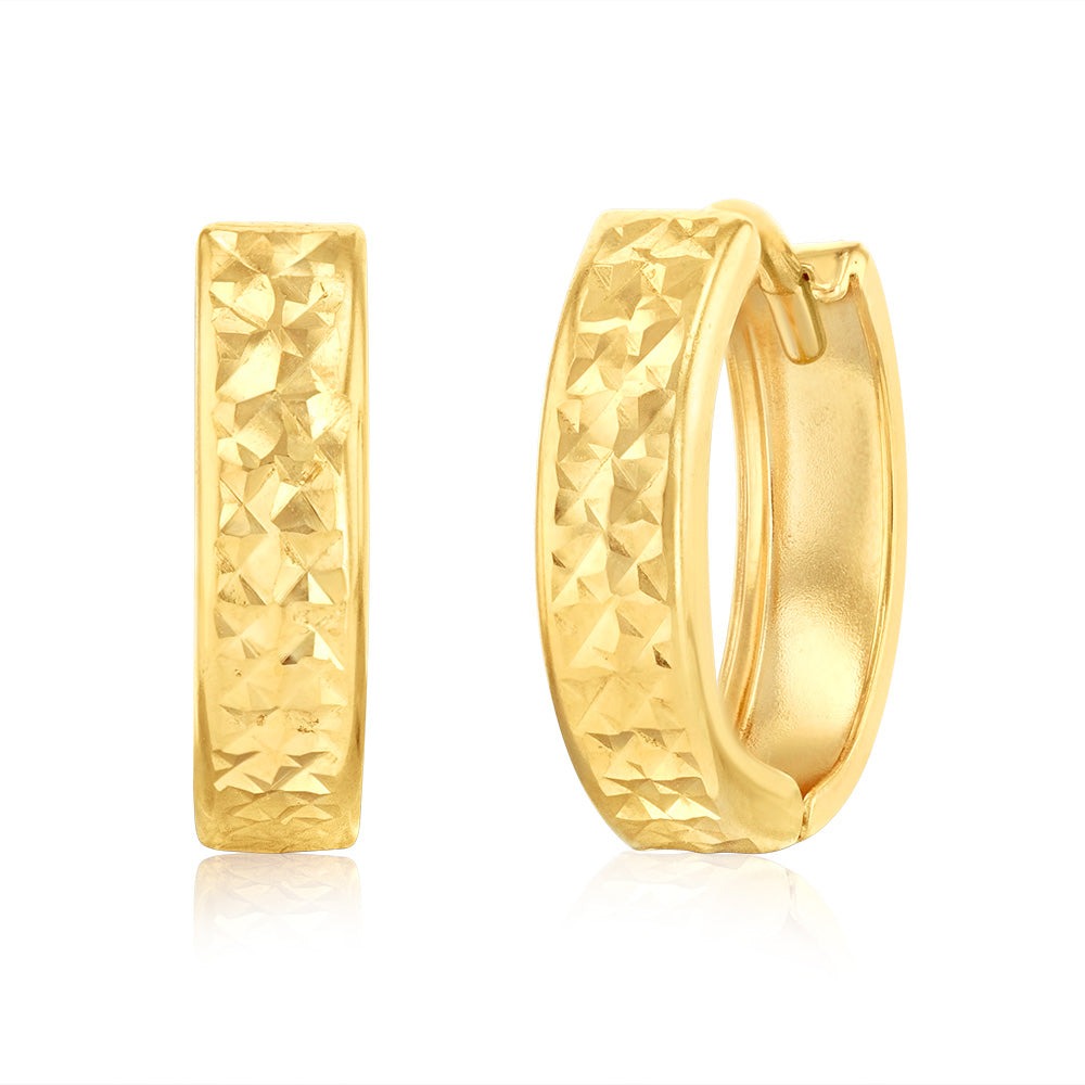 4MM D.Cut Huggie Hoop Earrings 10KT/14MM *FINAL SALE*