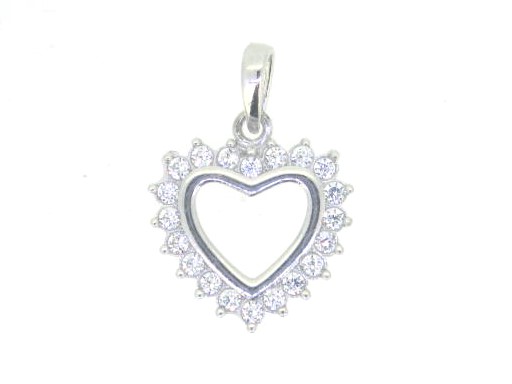 Cubic Zirconia Heart Frame Pendant 10KT WG/12MM