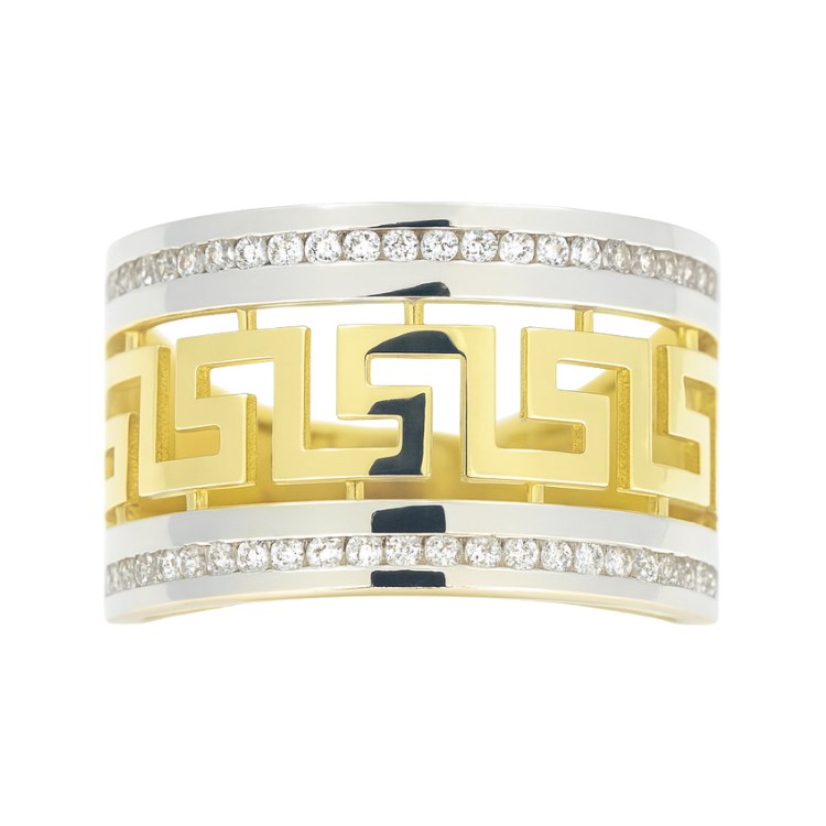 Greek Key Wide Band with Cubic Zirconia Ladies Ring 10KT TT/12MM *CLEARANCE-FINAL SALE*