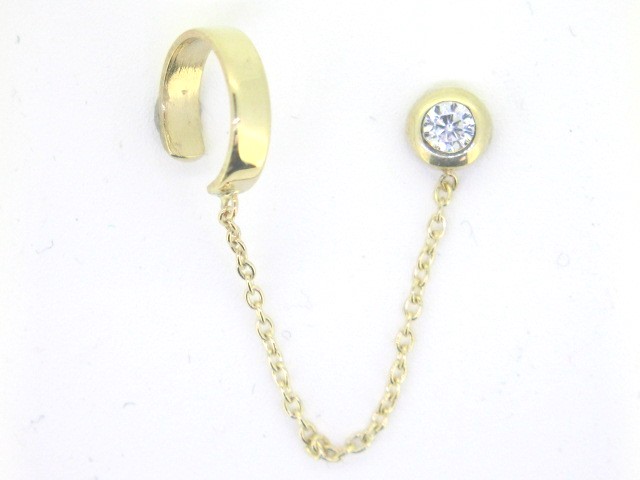 Single Cubic Zirconia Bezel Stud with Chain & Ear Cuff 10KT *FINAL SALE*