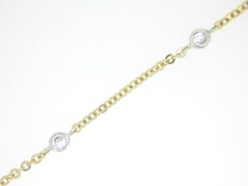 Rolo Link & Bezel Cubic Zirconia Station 18″ Necklace 10KT TT *CLEARANCE-FINAL SALE*