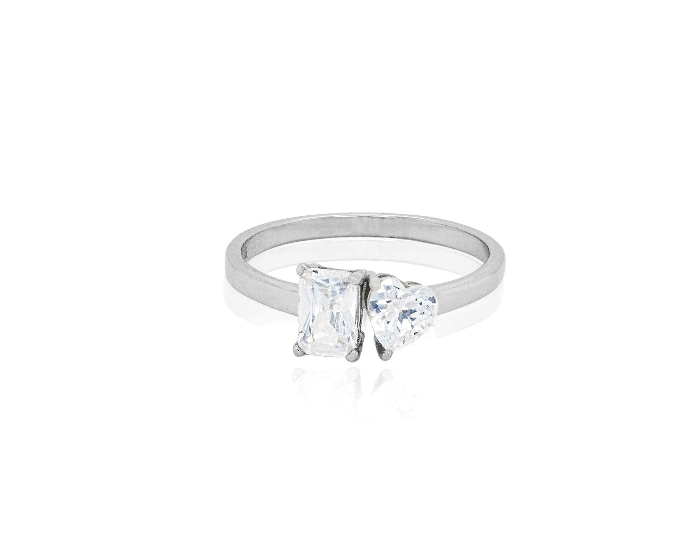 Cubic Zirconia Toi et Moi Ladies Ring Sterling Silver/SIZE 7