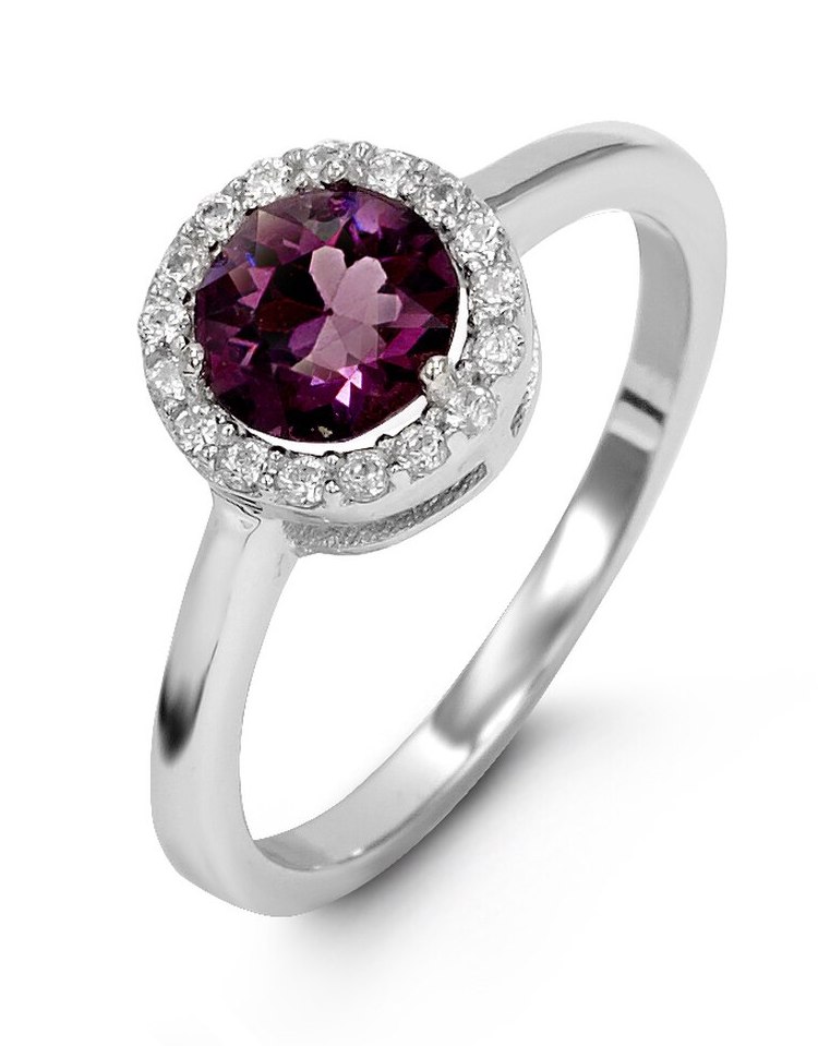 Simulated Birthstone & Cubic Zirconia Halo Ladies Ring Sterling Silver/FEB