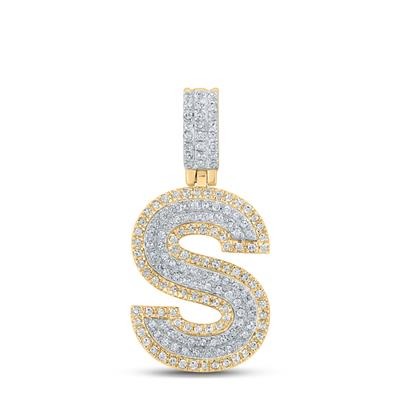 S Initial .50TCW Diamond Raised Block Pendant 10KT TT/20MM
