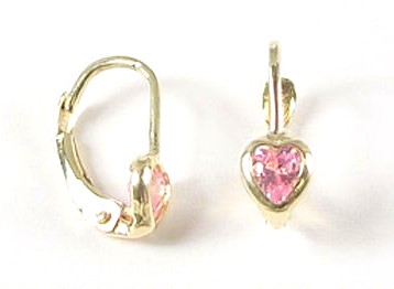 Pink Heart Shape Cubic Zirconia Lever Back Baby Earrings 10KT/5MM *FINAL SALE*