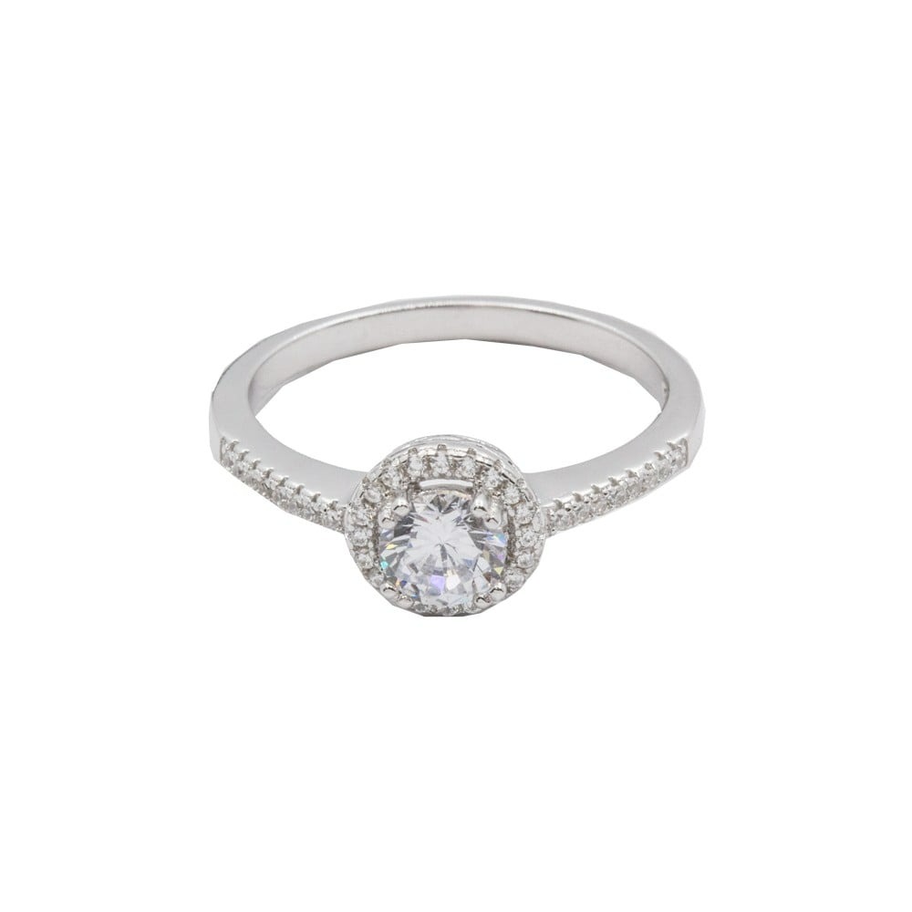 4MM Cubic Zirconia Halo Accented Ladies Ring Sterling Silver/SIZE 7