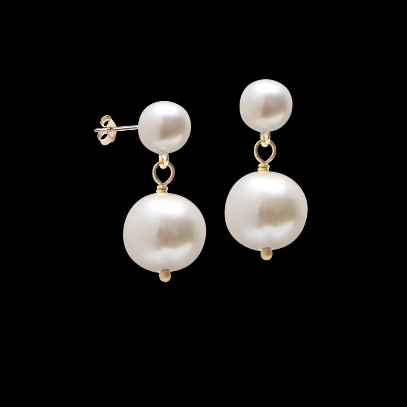 5-8MM Fresh Water Pearl Double Drop Stud Earrings 10KT *FINAL SALE*