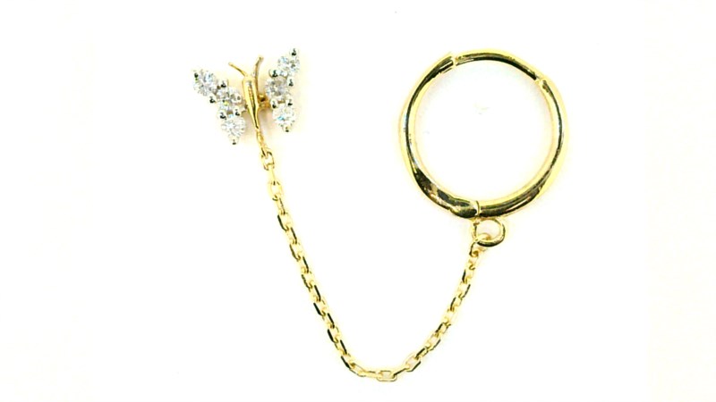 .10TCW Diamond Butterfly Stud & 2MM Huggie Hoop with Chain Double Piercing 10KT *FINAL SALE*