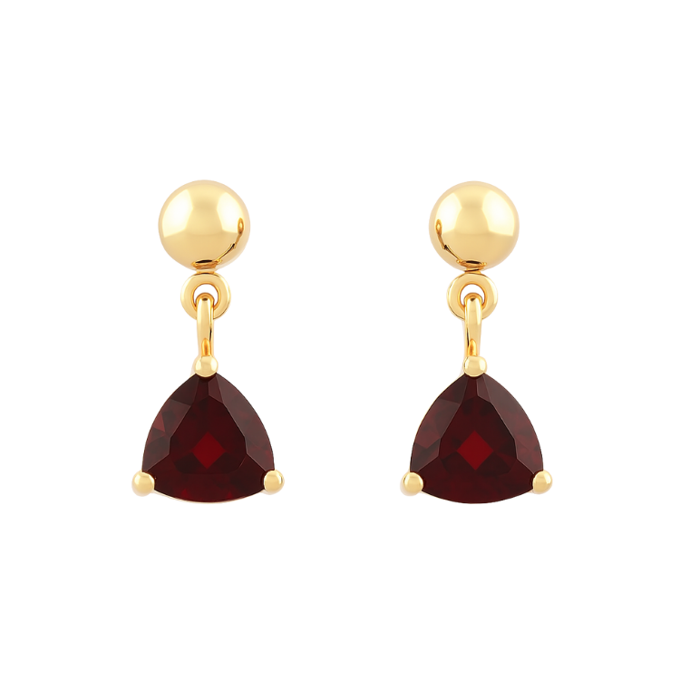 Genuine Garnet Trillion Dangle Stud Earrings 14KT *CLEARANCE-FINAL SALE*